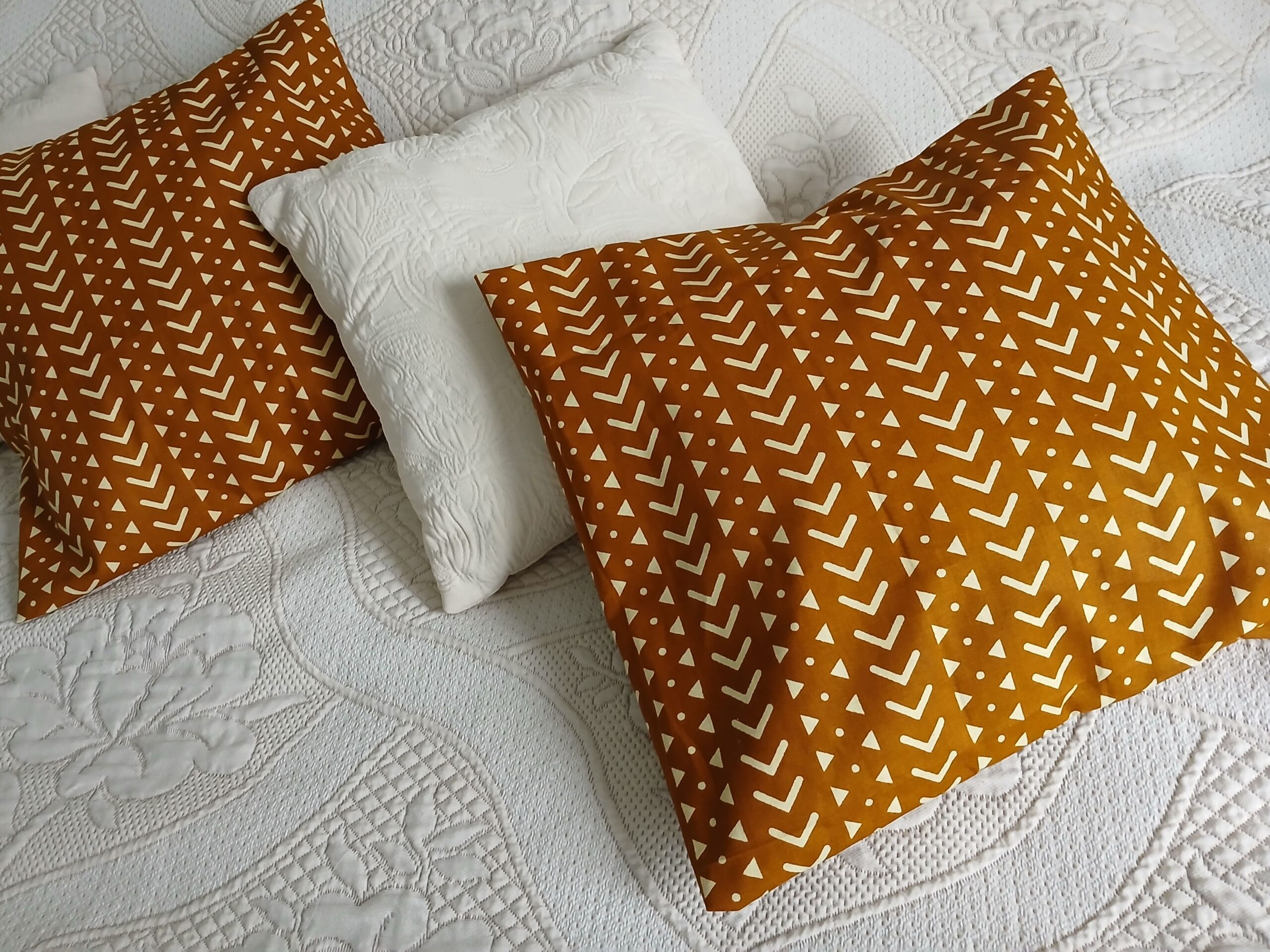 Habillez vos coussins de nuances ocre minéral, inspirées des terres et pigments naturels des bogolans traditionnels. Un textile graphique et chaleureux pour une décoration authentique et métissée.