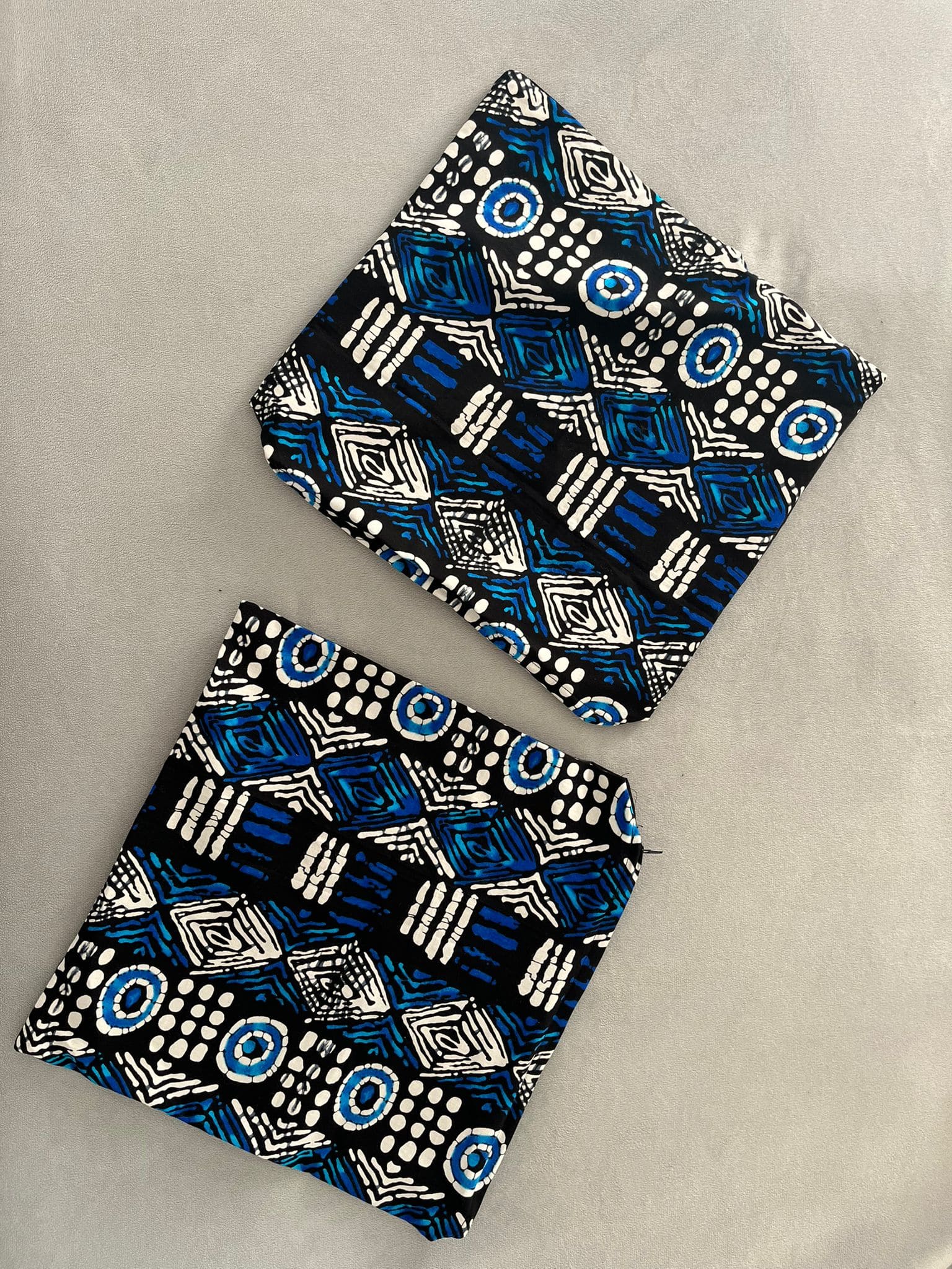 Habillez vos coussins d’élégance et de caractère avec ces housses biface. Confectionnées dans un Wax Indigo Outremer éclatant sur le recto et un bazin noir riche sur le verso, elles offrent un contraste raffiné et intemporel. Parfaites pour sublimer votre salon ou votre chambre, elles transforment vos coussins en véritables pièces décoratives, alliant artisanat, style et durabilité. Faciles à glisser sur vos coussins existants, elles permettent de renouveler votre décoration en un clin d’œil et d’apporter une touche unique et chaleureuse à votre intérieur.