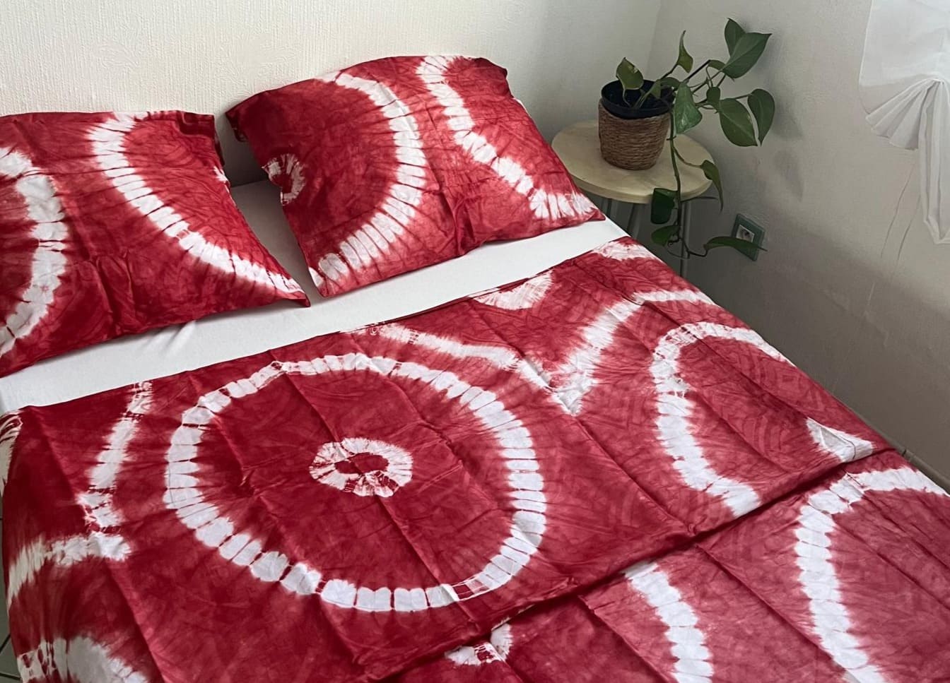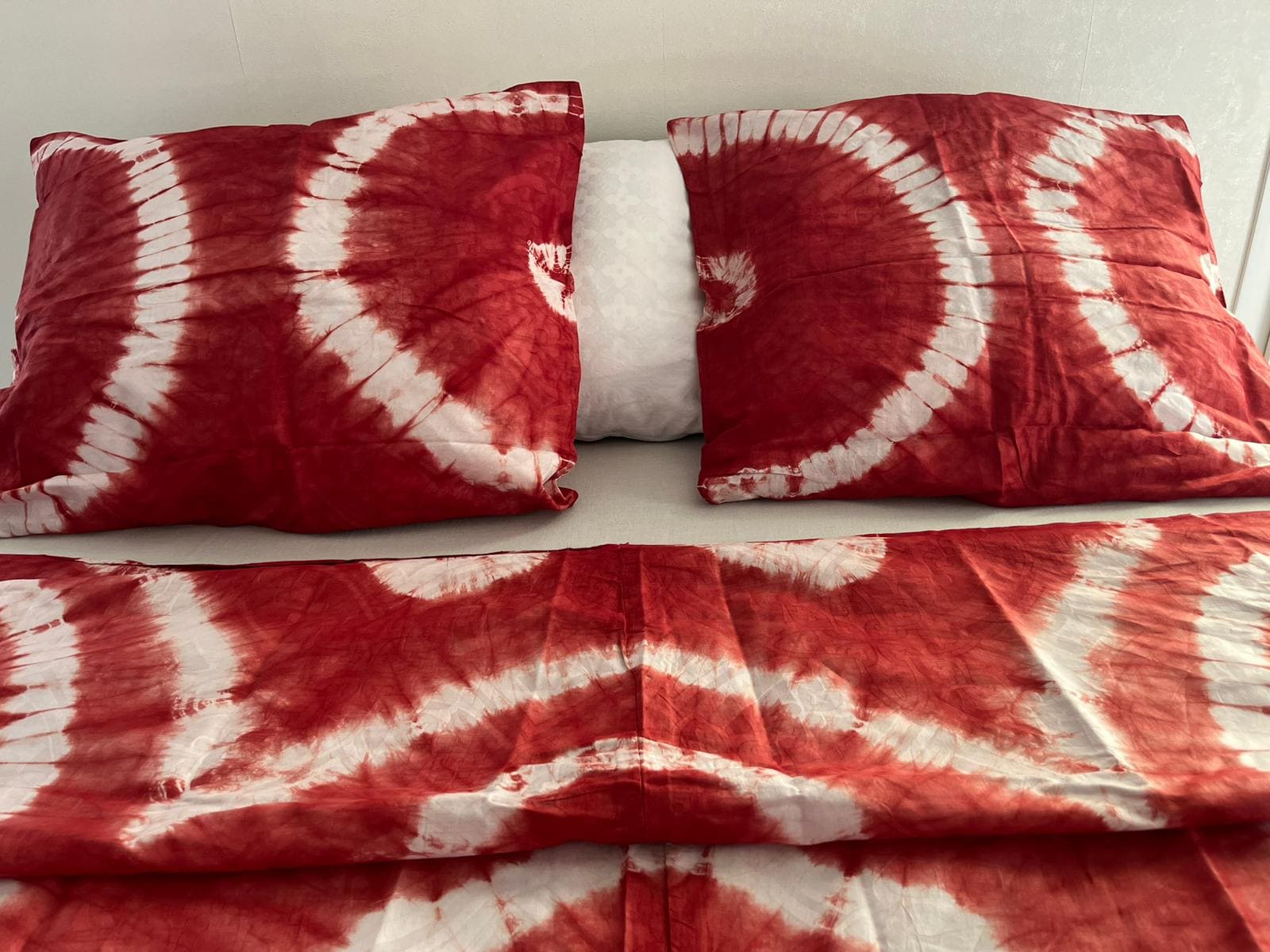 Apportez de la chaleur à votre chambre avec la parure en Batik Rouge. Cette housse en Bazin et ses motifs authentiques illumineront vos journées et adouciront vos nuits.