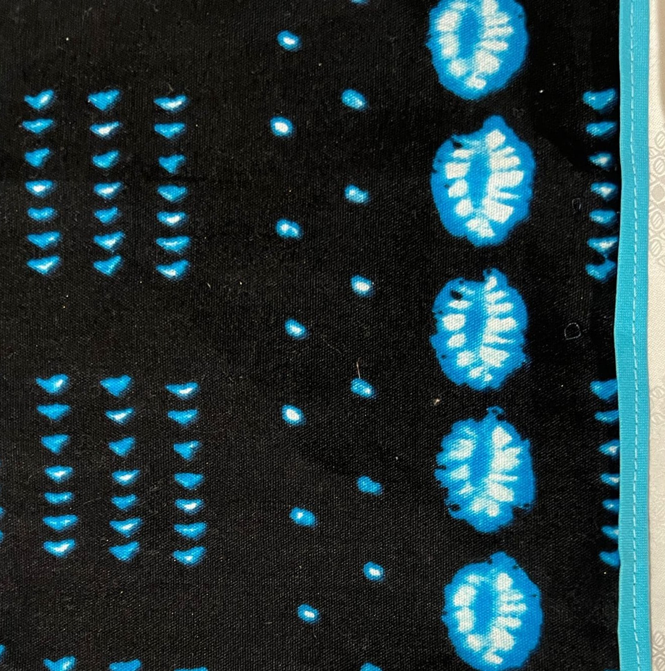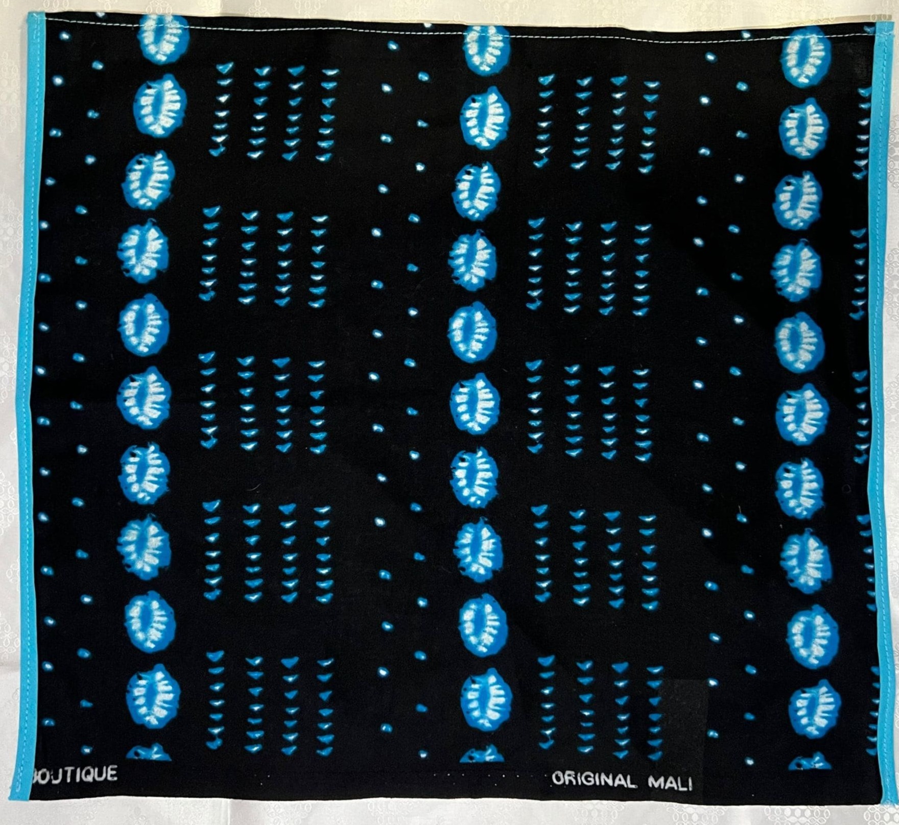 Ces serviettes de table mettent à l’honneur le motif emblématique du cauris, symbole de richesse et de protection dans la tradition africaine. Les nuances profondes d’indigo sont rehaussées de pointillés et de lignes turquoise, offrant un contraste raffiné et apaisant. . Confectionné en coton de qualité, elles sont idéales pour habiller vos repas quotidiens comme vos tables de fête, et associent l’authenticité culturelle à une esthétique contemporaine soignée.
